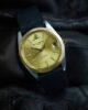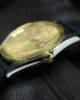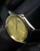 La Baumatic 1185 reflète le style horloger des années 1970-80 – une période où l’innovation mécanique se mêlait à des lignes résolument classiques. Elle est souvent associée à un boîtier acier complété d’une lunette en or 18 K, créant un contraste raffiné entre robustesse et luxe discret. Sur le cadran champagne soleil du plus bel effet, les index et aiguilles d’origine accompagnent les discrets points au tritium.