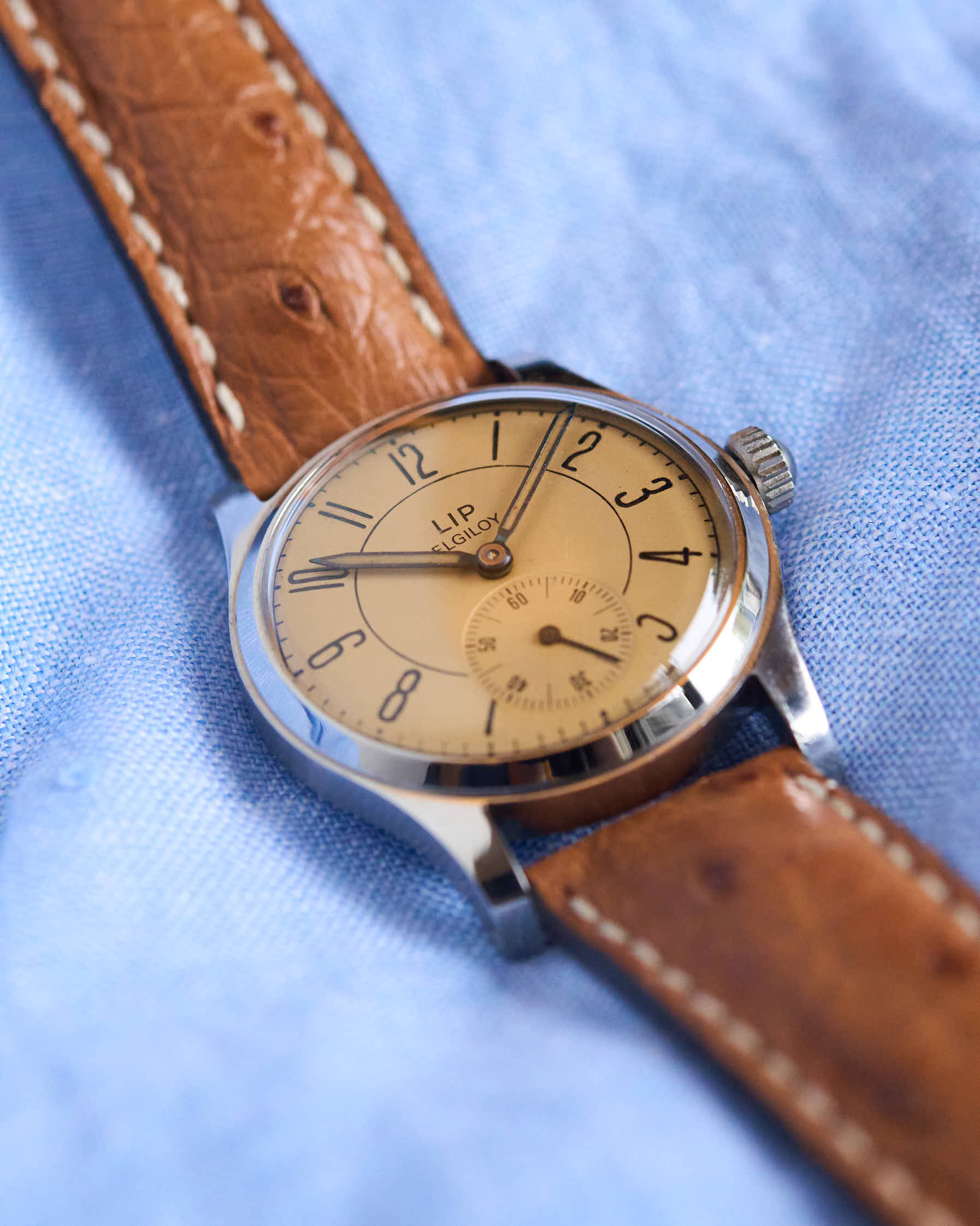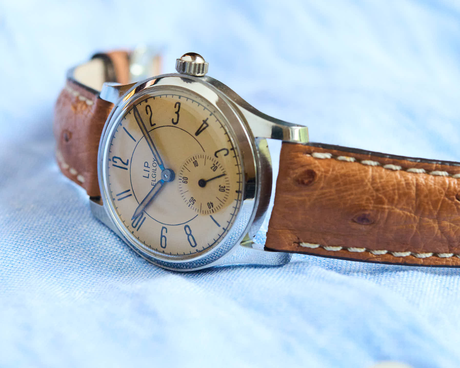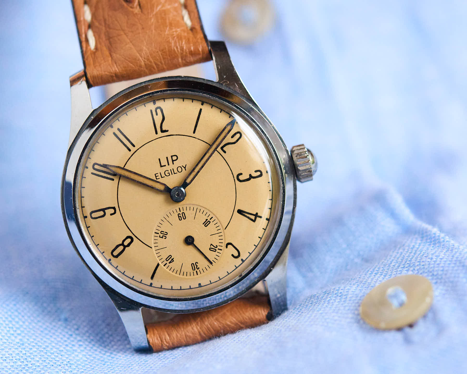 Cette LIP Elgiloy des années 1950 incarne l’une des interprétations les plus raffinées du design horloger français d’après-guerre.
