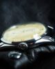 Le boîtier en acier, aux proportions idéales (34 mm), affiche une élégance naturelle, jamais ostentatoire. Les cornes sont sobres mais géométriquement complexes, légèrement galbées, et s’intègrent harmonieusement à l’ensemble. Rien n’est superflu. Tout est juste.