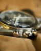 Les index et aiguilles sont recouverts de tritium, aujourd’hui patiné dans des doux tons crème. Cette matière, utilisée avant l’adoption du luminova, a pris avec le temps une teinte chaleureuse qui contraste joliment avec le noir mat subtilement grainé du cadran.