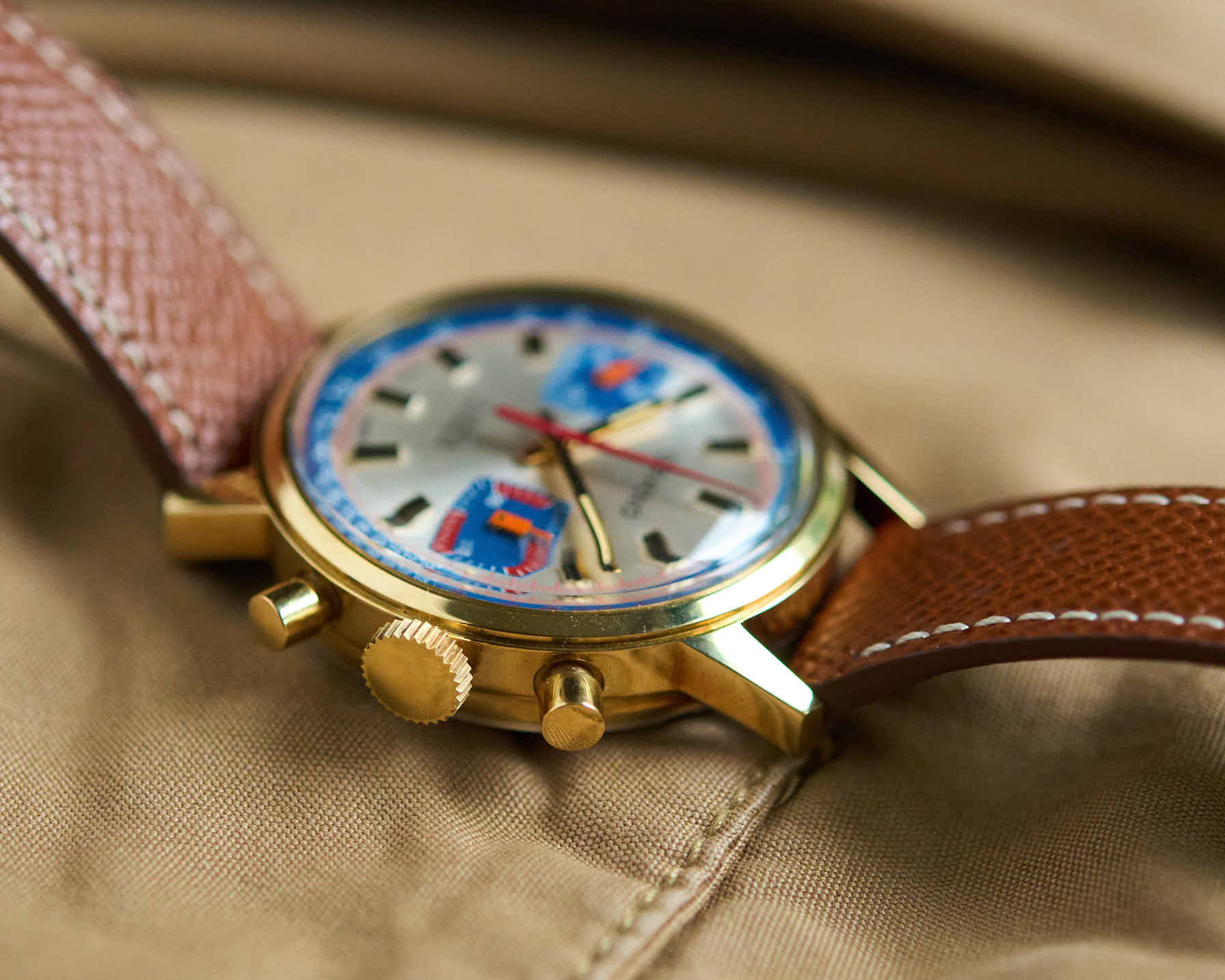 Pour l’amateur de vintage qui recherche un chronographe original et unique, au look audacieux, différent des classiques sobres.