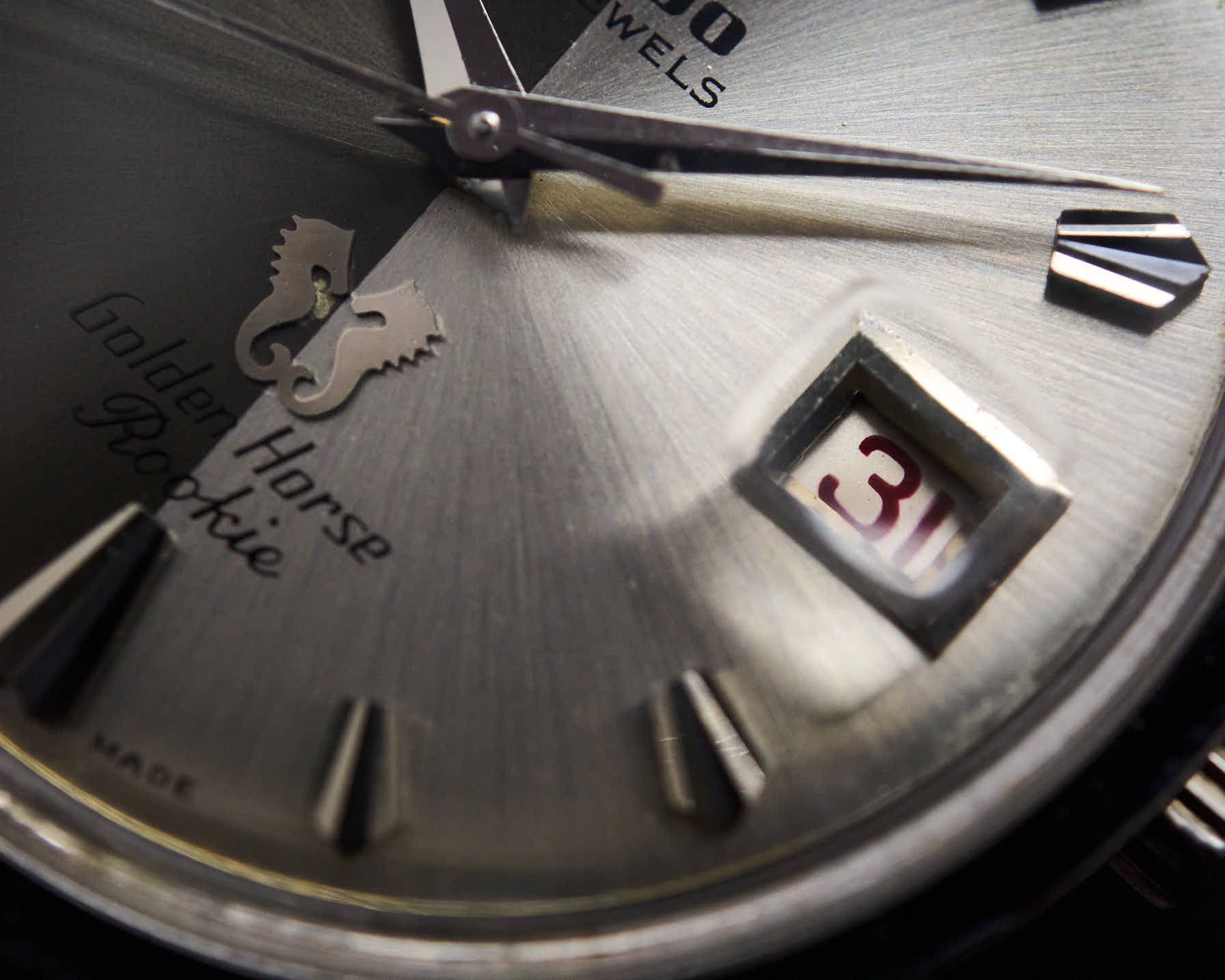 Puis vient ce qui fait l’âme de la Golden Horse : ces signatures discrètes mais emblématiques, cette ancre mobile montée sur un rubis qui indiquait la nécessiter de réviser la montre — lorsqu’elle cessait de tourner avec fluidité cela signifiait que l’huile avait durci comme celle du mécanisme en dessous —, ce médaillon évocateur aux deux hippocampes, autant de détails qui ancrent la pièce dans l’histoire de la marque tout en lui conférant une identité forte.