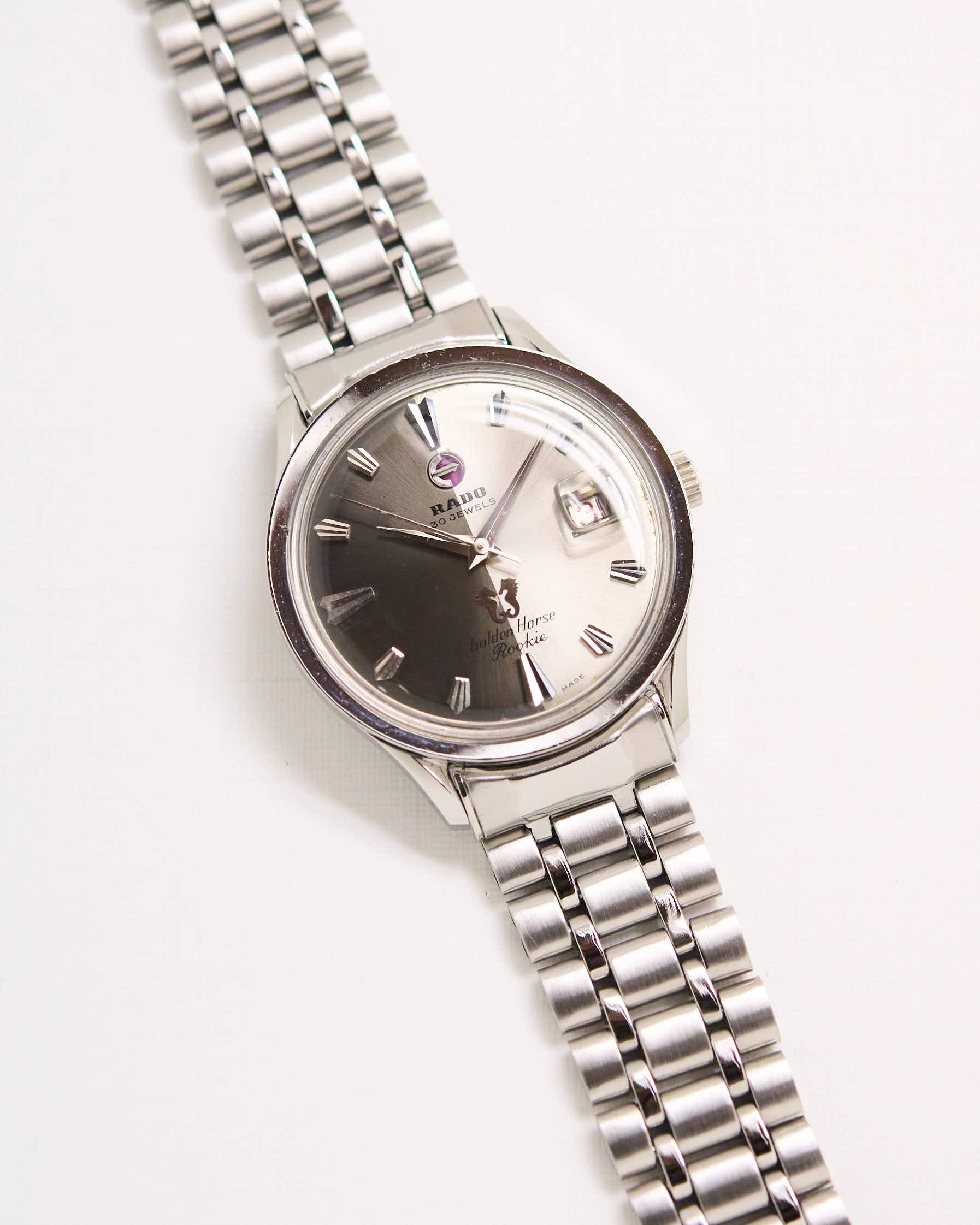 La RADO Golden Horse Rookie, presque introuvable dans la version présentée ici, est née au tournant des années 1960 et appartient à cette catégorie rare : celle des pièces qui capturent à la fois l’élan créatif d’une décennie et le savoir-faire d’une maison en pleine ascension, Rado.