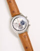 Le cadran argenté, ponctué des emblématiques compteurs tricolores, capte immédiatement le regard par son équilibre et sa profondeur.