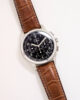 Le cadran privilégie une lecture immédiate, presque instinctive. Les index bien marqués, les aiguilles franches et les compteurs de chronographe parfaitement équilibrés rappellent l’ADN militaire des montres conçues pour être lues en un coup d’œil, quelles que soient les conditions. Rien n’est superflu : chaque élément est là pour servir la fonction, dans un esprit de sobriété et d’efficacité. L’échelle tachymétrique, intégrée avec retenue, s’inscrit naturellement dans cette logique d’instrument de mesure.